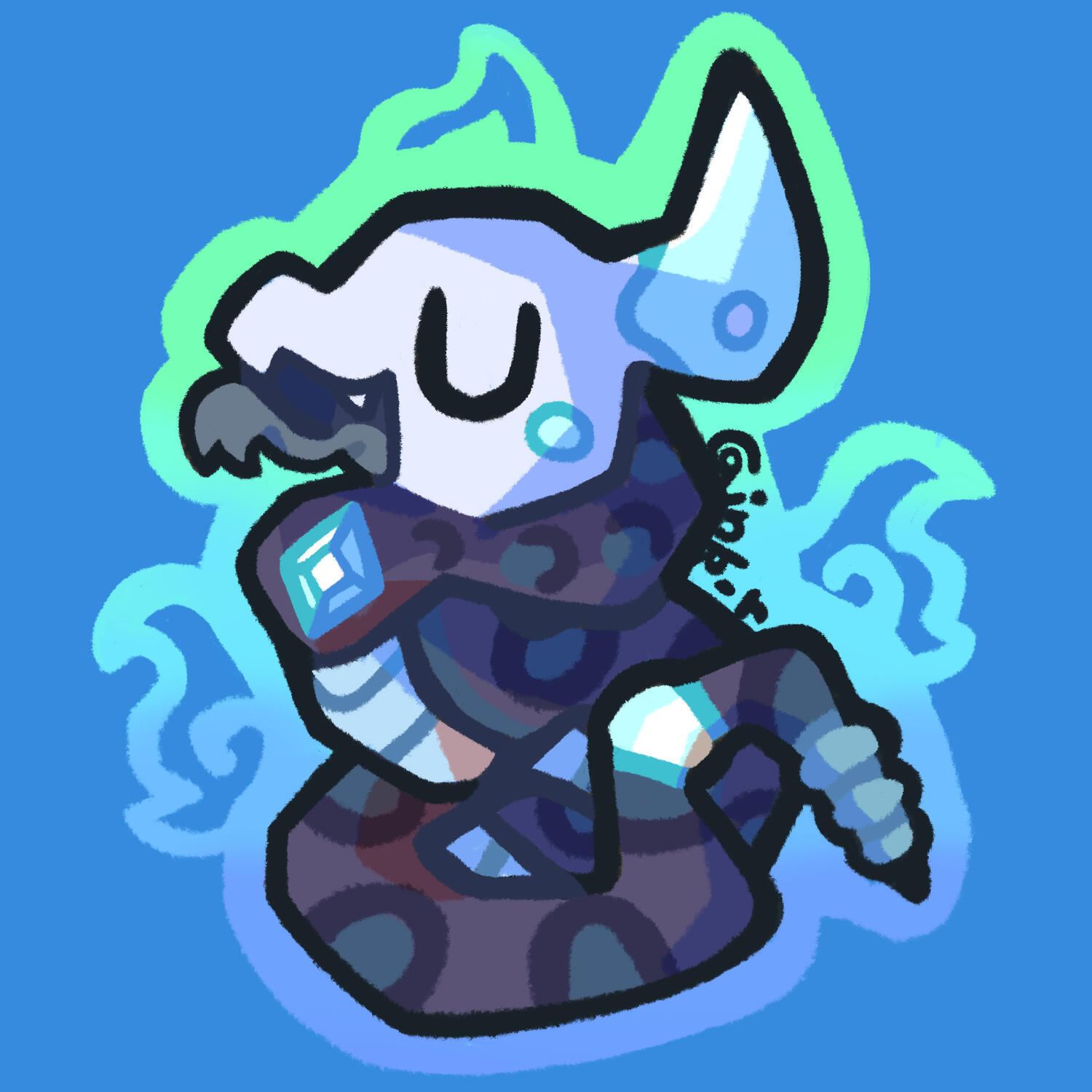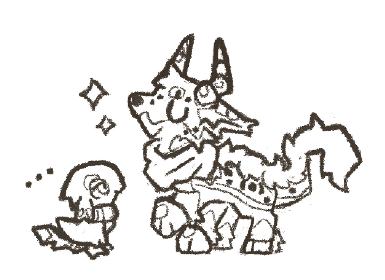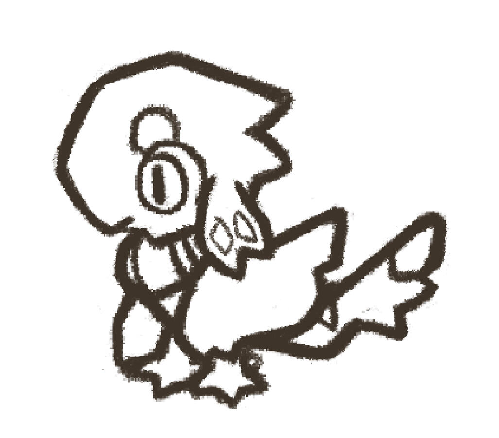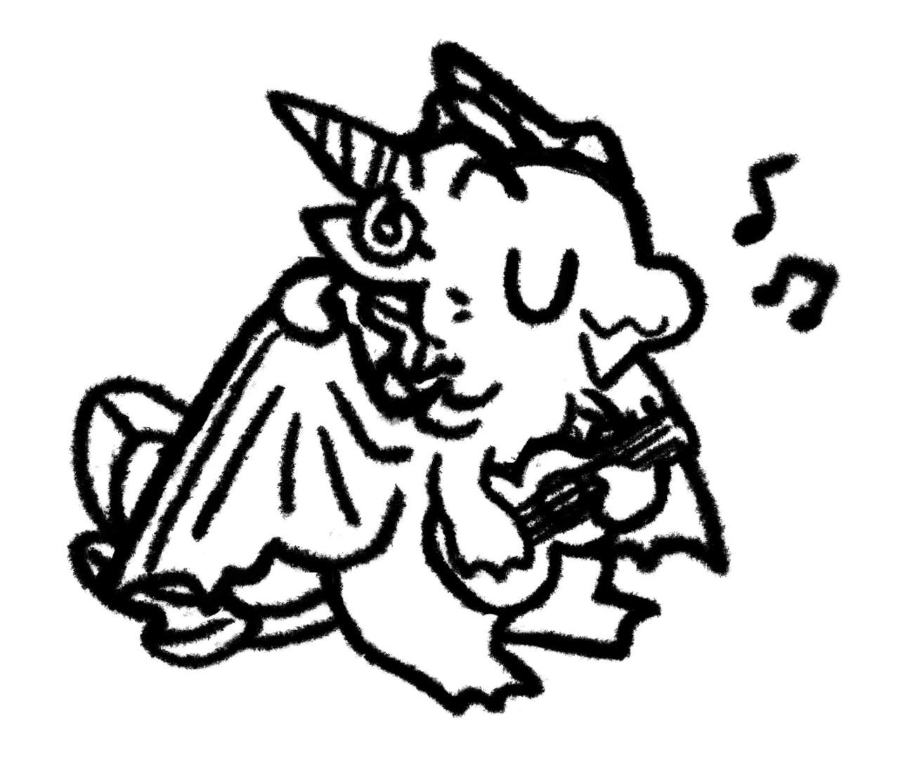 Single monochrome fullbody chibi doodle of the character