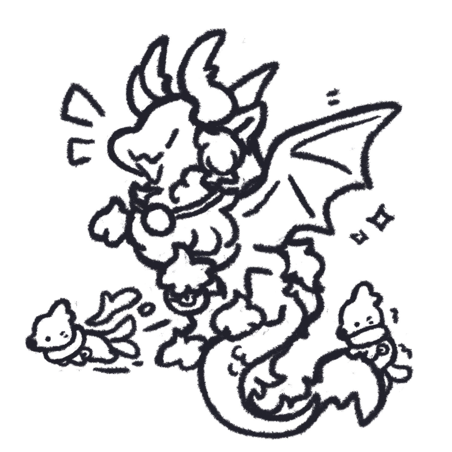 Contains 3~5 monochrome doodles of the characters